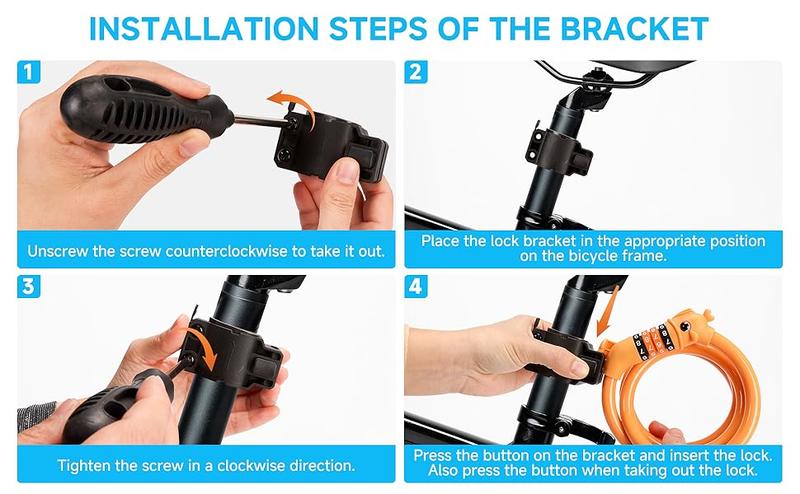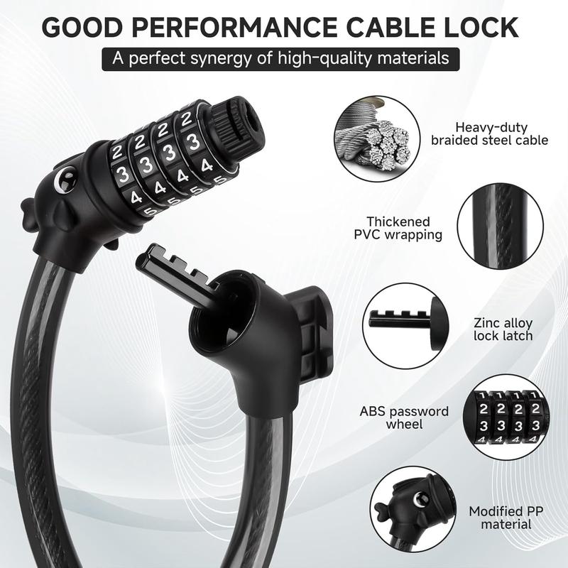 Easy-to-Set Combination: The resettable four-digit password bicycle cable lock allows you to set a personalized password, enjoying keyless convenience without worrying about lost or stolen keys. It comes with a free mounting bracket for easy portability. After setting the password, it is recommended to record it or tell your relatives to prevent forgetting.